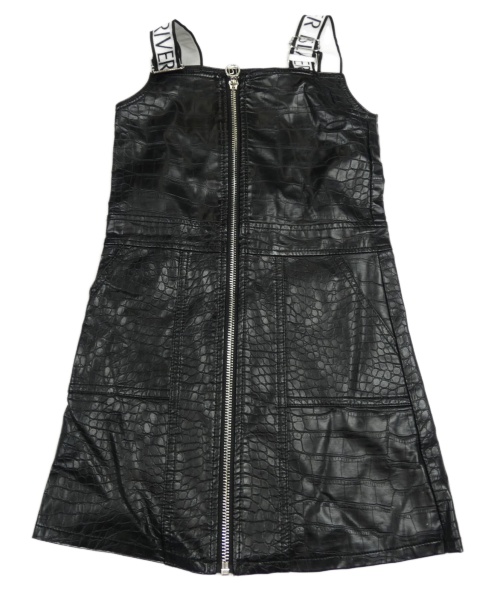 Čierne koženkové šaty s krokodýlím vzorom a nápismi River Island