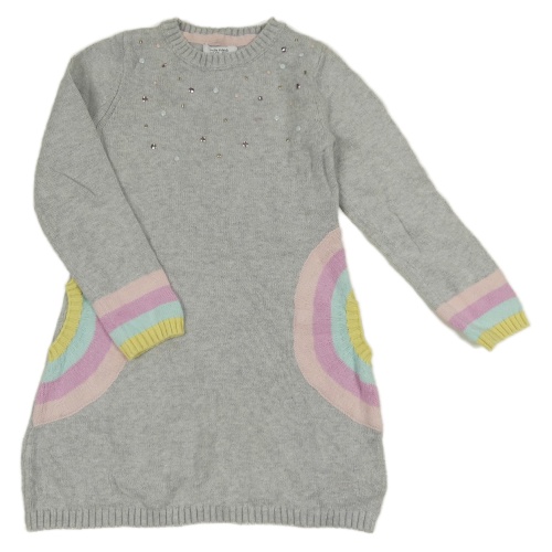 Svetlosivé melírované svetrové šaty s kamienkami a pruhmi