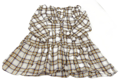Bielo-tmavomodro-žlté kockované šaty s volánem Next