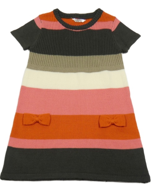 Hnedo-ružovo-smotanové pruhované svetrové šaty