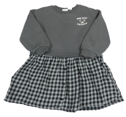 Tmavosivé teplákové šaty s medvěďom a lehkou kostkovanou sukní Zara