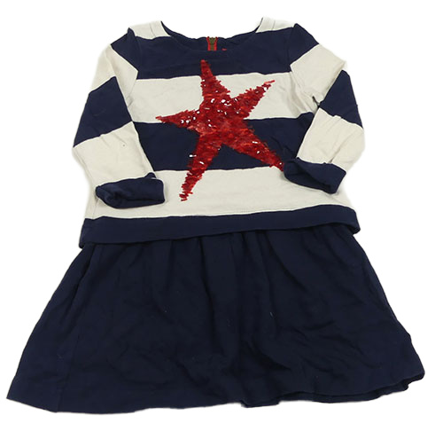 Tmavomodro-biele pruhované teplákové šaty s hvězdou z překlápěcích flitrů joules