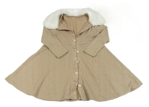 Béžové vzorované prepínaci šaty s kožušinovým golierikom