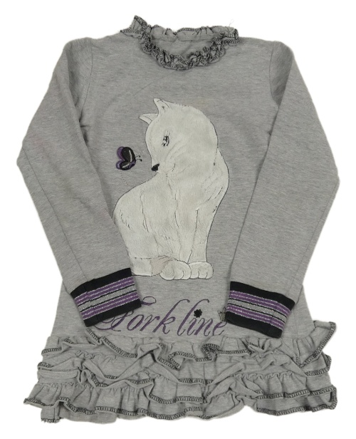 Sivé teplákové šaty s mačkou a volánikmi
