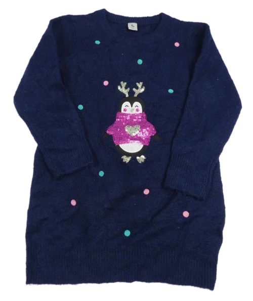 Tmavomodré bodkovaná é svetrové šaty s tučňákem Tu