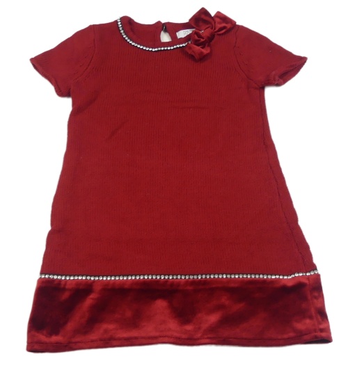 Tmavočervené svetrovo/semišové šaty s mašlou a kaminky zn miss MONA MOUSE
