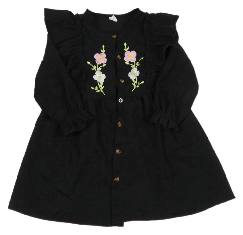 Čierne rebrované prepínaci šaty s výšivkami květů a volánikmi Shein