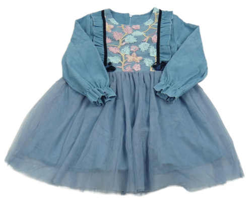 Modré manšestrovo/tylové šaty s kvietkami