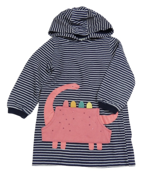 Tmavomodro-biele pruhované teplákové šaty s dinosaurem/kapsou a flitrami a kapucňou F&F
