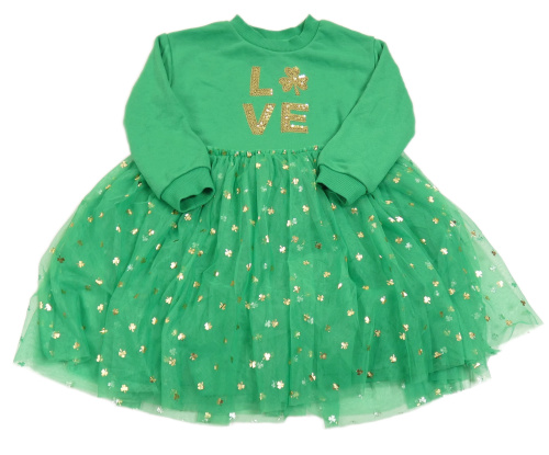 Zelené teplákovo/tylové šaty s trojlístkem z flitrů Primark