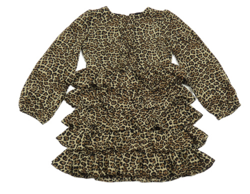 Béžovo-hnedé vzorované šaty s volánikmi BARDOT