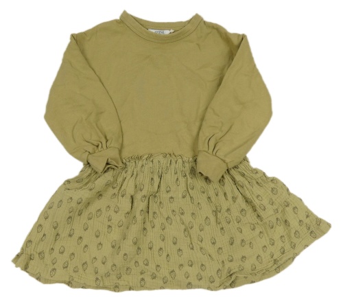 Khaki teplákové šaty s mušelínovou sukní a jahodami