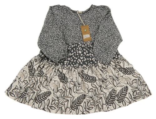 Nové - tmavošedo-smotanové melírované šaty s bodkami a vzorom a lístečky Next
