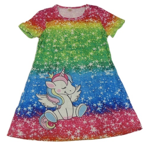 Ružovo-zeleno-modré šaty s jednorožcom a hviezdičkami
