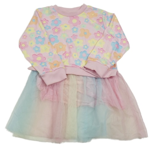Svetloružová -farebné teplákovo/tylové šaty s kvetmi