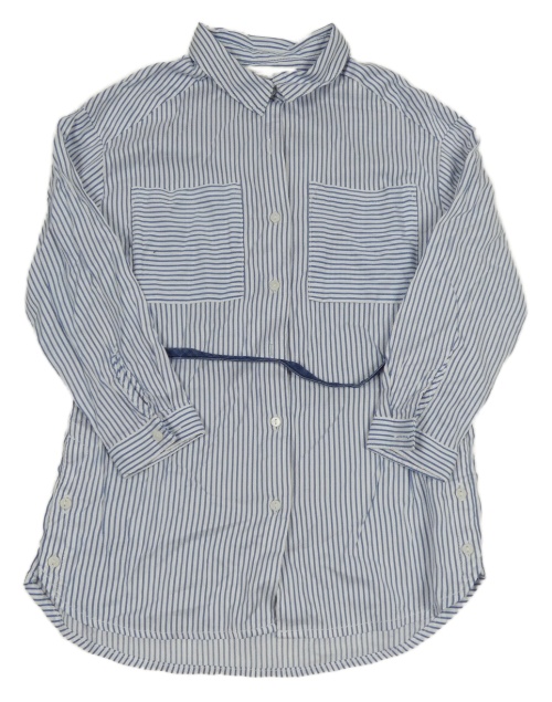 Bielo-modré pruhované prepínaci košeľové šaty s opaskom Zara
