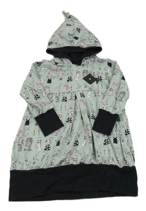 Světlemodrošedo-čierne teplákové šaty s dievčatkom a kapucňou