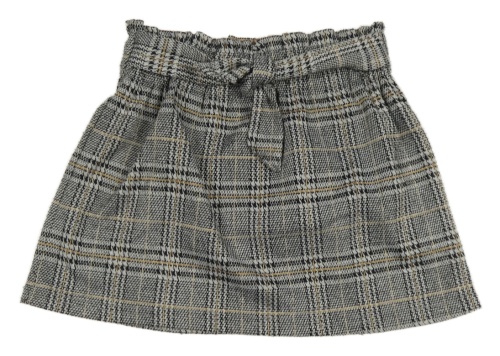 Čierno-svetlošedá -hnedá kockovaná vzorovaná paper bag úpletová sukňa so zavazováním PRIMARK