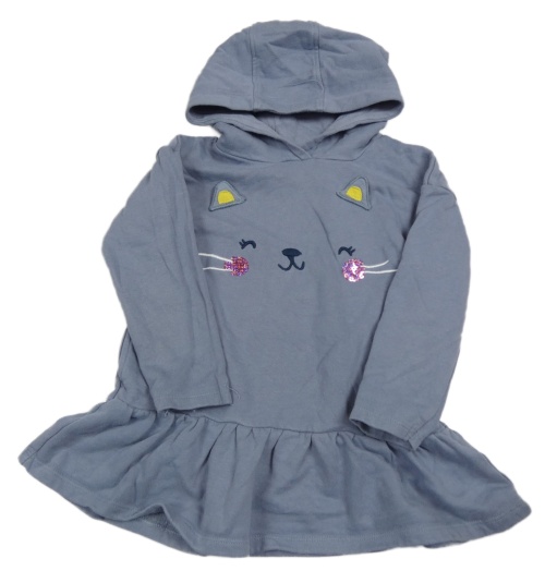 Šedomodrá tepláková šatová tunika s mačičkou a kapucňou Nutmeg