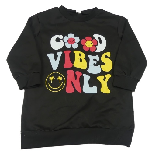 Čierne teplákové šaty s nápismi a kvetmi a smajlíkmi SHEIN