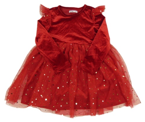 Červené sametovo/tylové šaty s hviezdami a volánikmi Sinsay