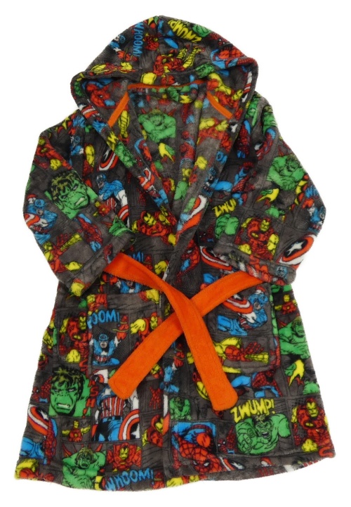 Sivý chlpatý župan s Avengers a kapucňou
