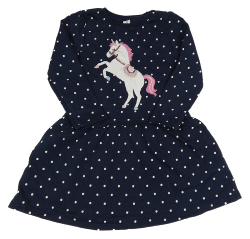 Tmavomodré bodkovaná é teplákové šaty s jednorožcom s flitrami Topolino