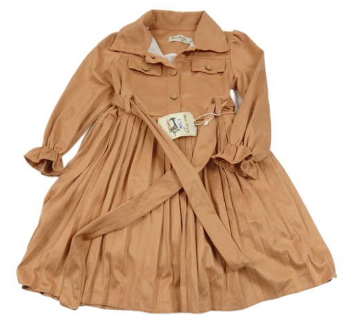 Nové - karamelové plisované šaty s volánikmi a golierikom a opaskom