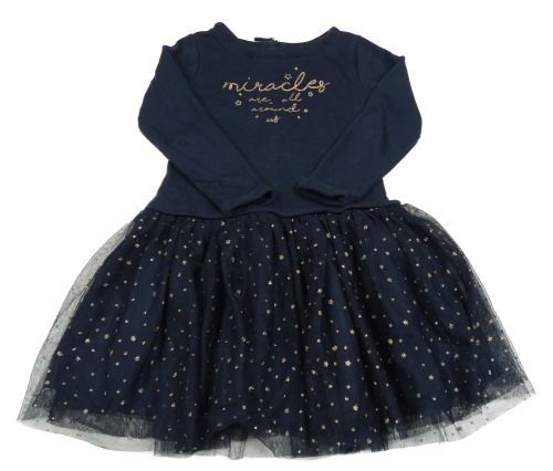 Tmavomodré teplákovo/tylové šaty s nápisom a hviezdičkami