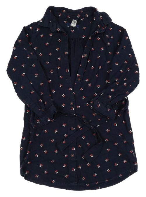 Tmavomodré košeľové prepínaci šaty s třešněmi a opaskom Okaidi