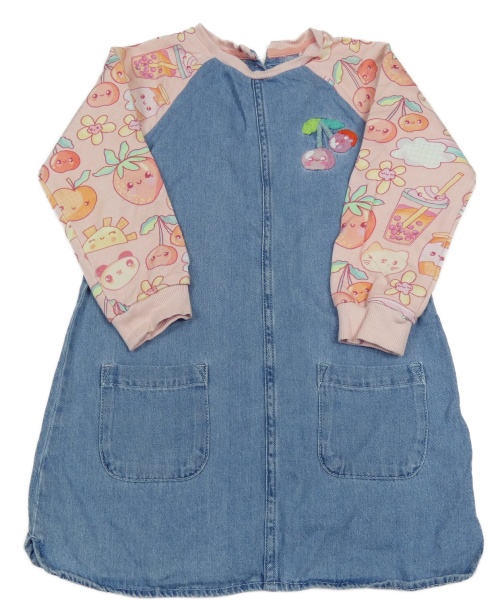 Modro-svetloružové riflovo/teplákové šaty s třešničkami a obrázkami Next