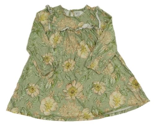 Zelené kvetované bavlnené šaty s listami a volánikmi Next