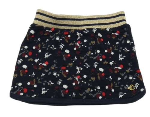 Tmavomodro-zlatá prešívaná tepláková vyteplená sukňa s větvičkami a pruhmi PETIT BATEAU