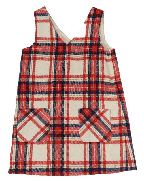 Smetanovo-červeno-tmavomodré kockované vlnené šaty F&F
