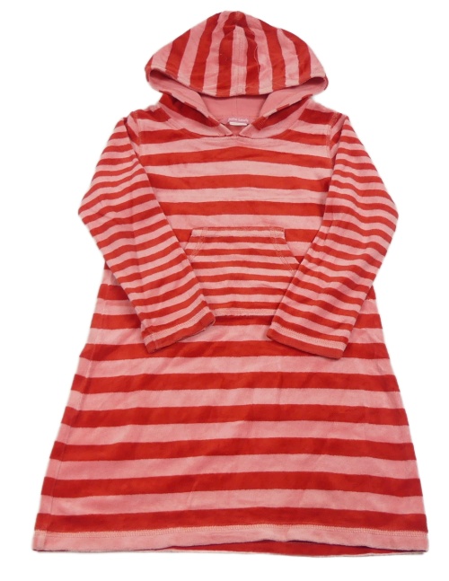 Červeno-ružové pruhované zamatové šaty s kapucňou John Lewis