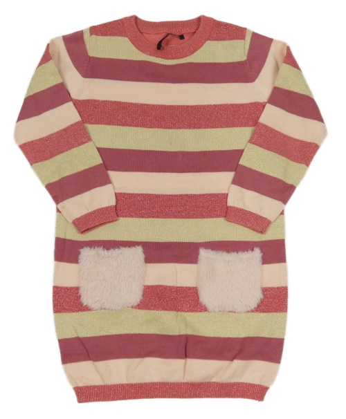 Ružovo-béžovo-vínové pruhované trblietavé svetrové šaty s chlpatými vreckami George