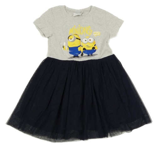 Sivo-tmavomodré bavlněno/tylové šaty s Mimoni