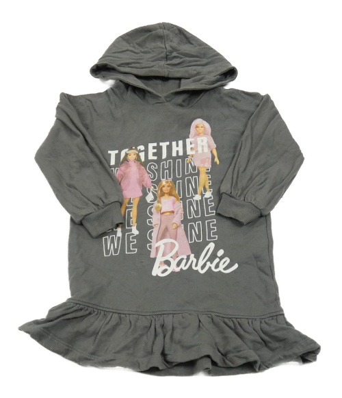 Sivé teplákové šaty s Barbie a kapucňou