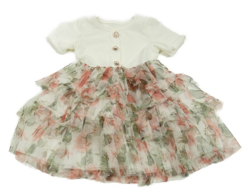 Bielo-zeleno-ružové rebrované šaty s květovanou vrstvenou tylovou sukní