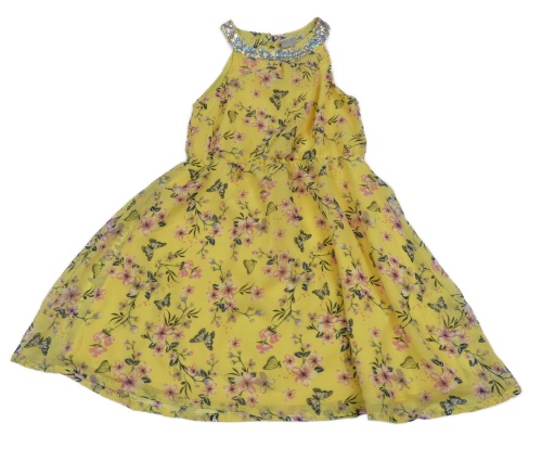 Žlté šifónové šaty s kvietkami a motýlikmi a flitrami Kiki&Koko