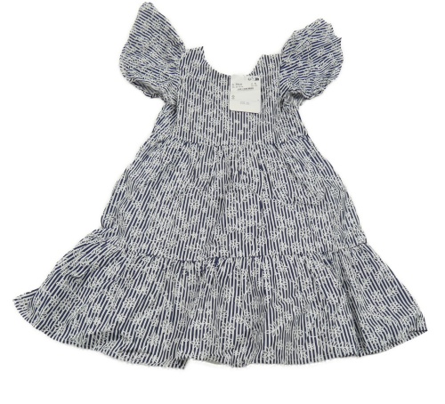 Nové - Tmavomodro-biele pruhované plátenné šaty s kvietkami Mayoral