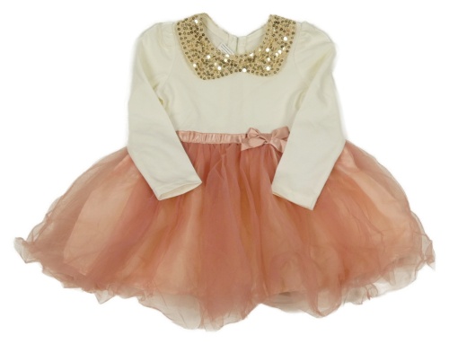 Smetanovo-svetloružové šaty s tylem a mašlou a golierikom s flitrami Blue Sky