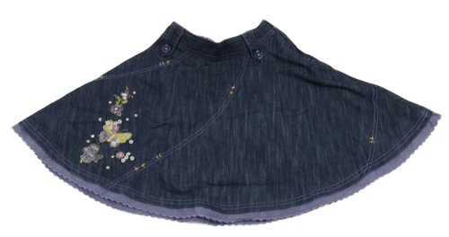 Tmavomodro-fialová rifľová sukňa s kvetmi Next