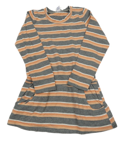 Sivo-oranžovo-biele pruhované bavlnené šaty
