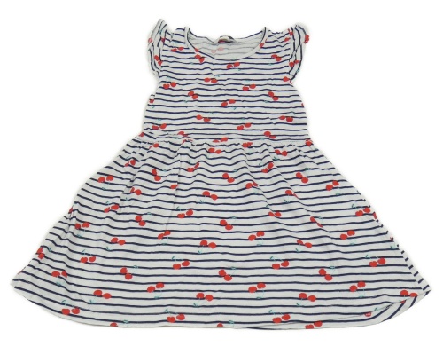 Bielo-tmavomodré pruhované bavlnené šaty s třešněmi Primark