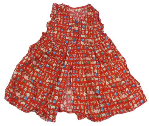 Červeno-farebné vzorované prepínaci šaty s písmeny a mačkami