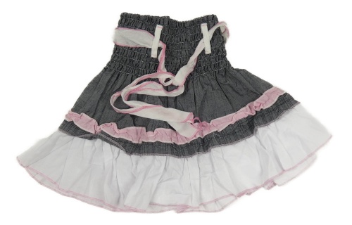 Tmavomodro-biela sukňa s volánikmi a opaskom