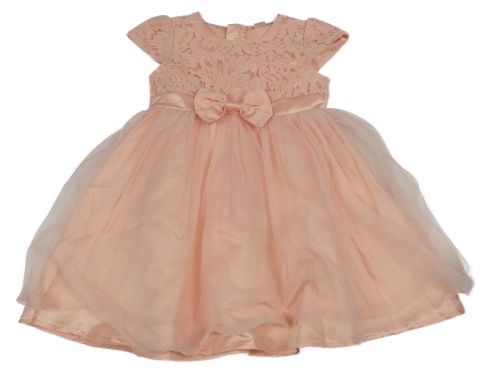 Broskvové tylovo/krajkové šaty s mašlou Shein