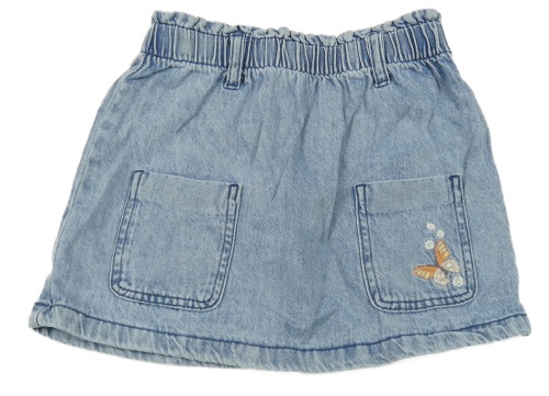 Svetlomodrá rifľová sukňa s vreckami a výšivkou Dopodopo