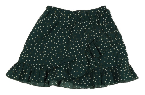 Tmavozelená ľahká sukňa s volánikmi a bodkami